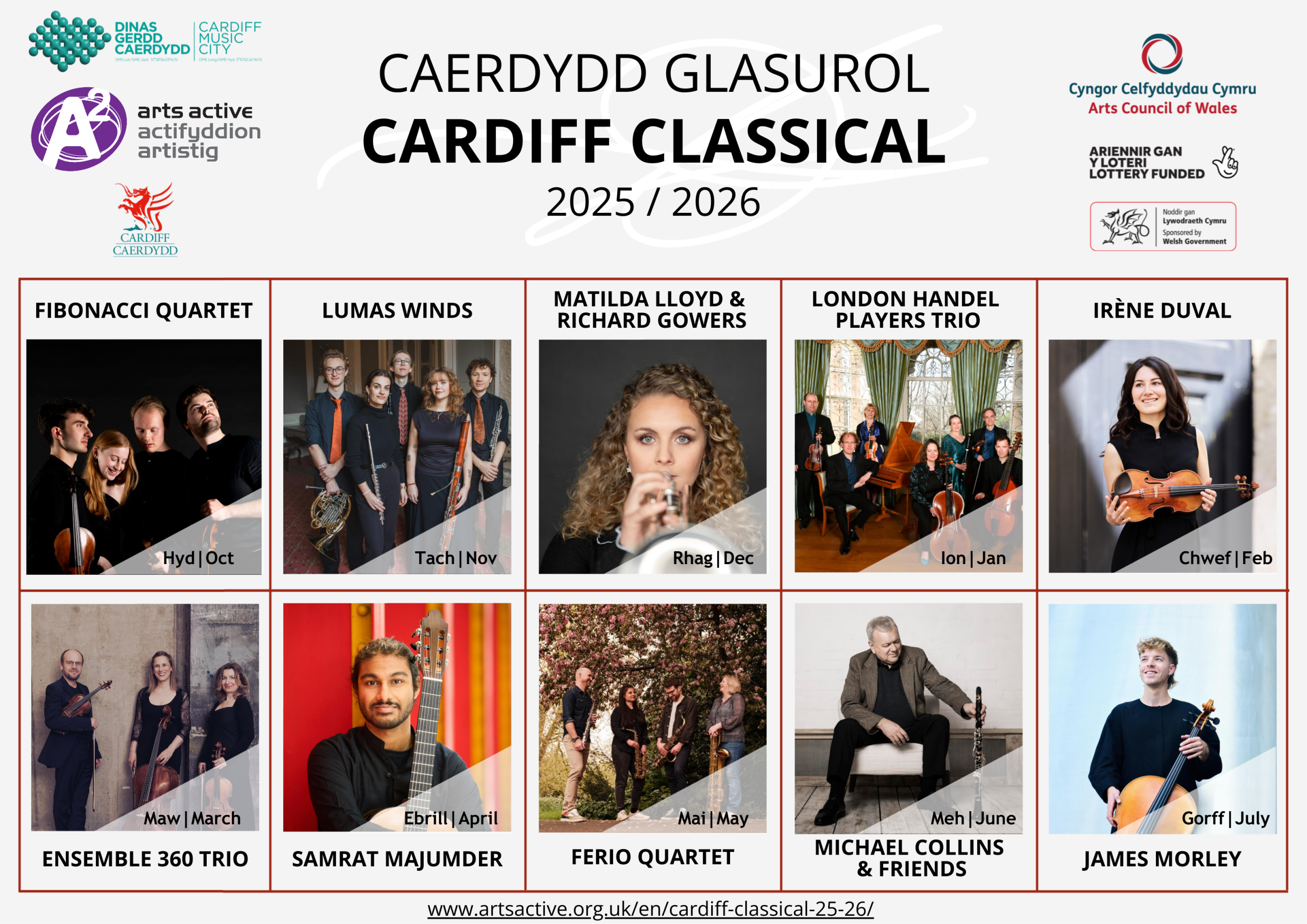 Following an exciting 24/25 season that featured artists like Welsh harpist Alis Huws, the Galliard Ensemble, the Mavron and Ferio Quartets, London Winds, and up and coming percussionist Jordan Ashman, the new season promises even more unforgettable performances.